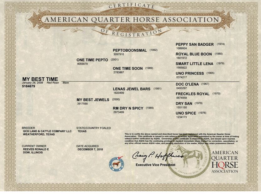 Sire: Sweet Lil Pepto NCHA earner of $237,738 and a $6M Sire